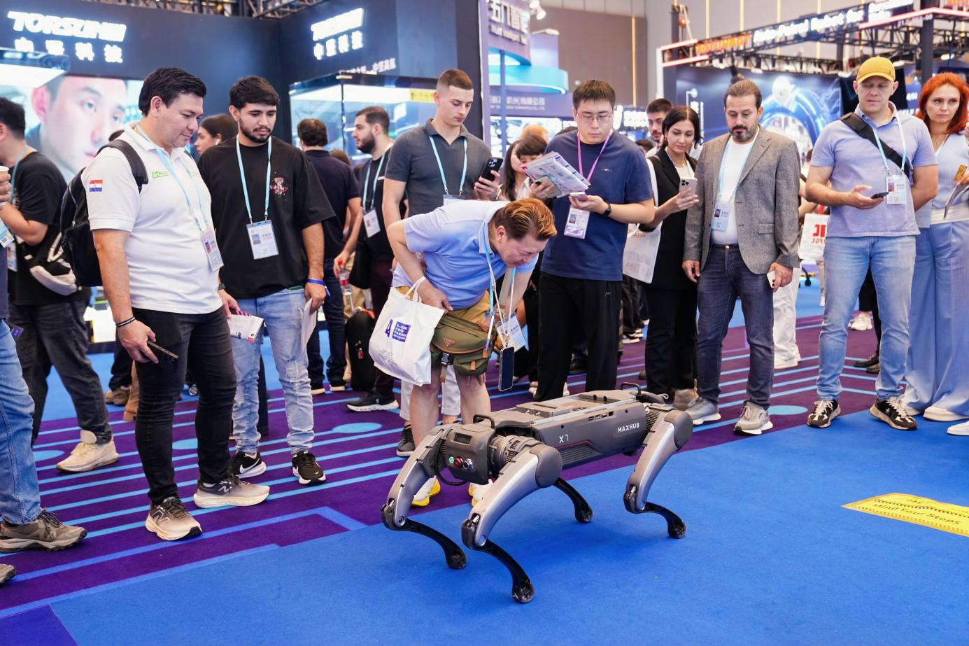 工业级四脚机械人 MAXHUB X7系列展示出超卓的活动能力和顺应性,合用于工业、电力、救援等复杂使命;智能柔性机械臂 MAXHUB A3系列则聚焦工业、科研的柔性从动化,供给了精准、平安的从动化新选择。