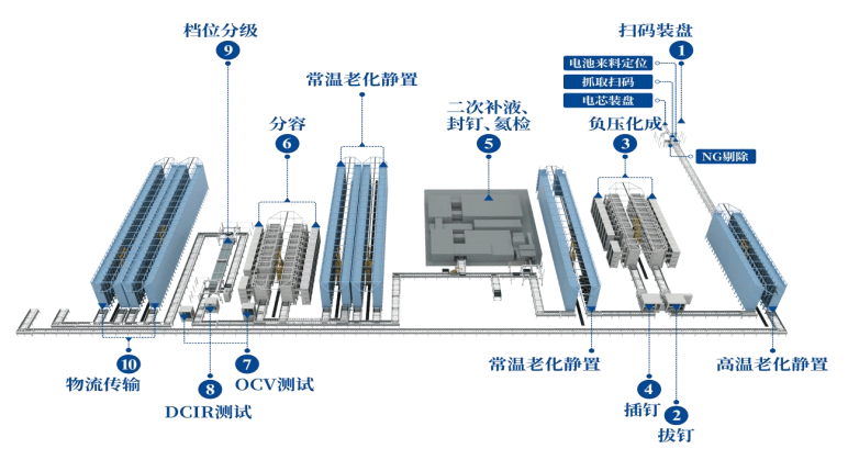 公司目前发卖的整线产物以方形电池的后处置从动化出产线为从,以该整线产物为例,引见公司锂电池后处置从动化出产线的结构、工艺流程以及焦点设备如下。