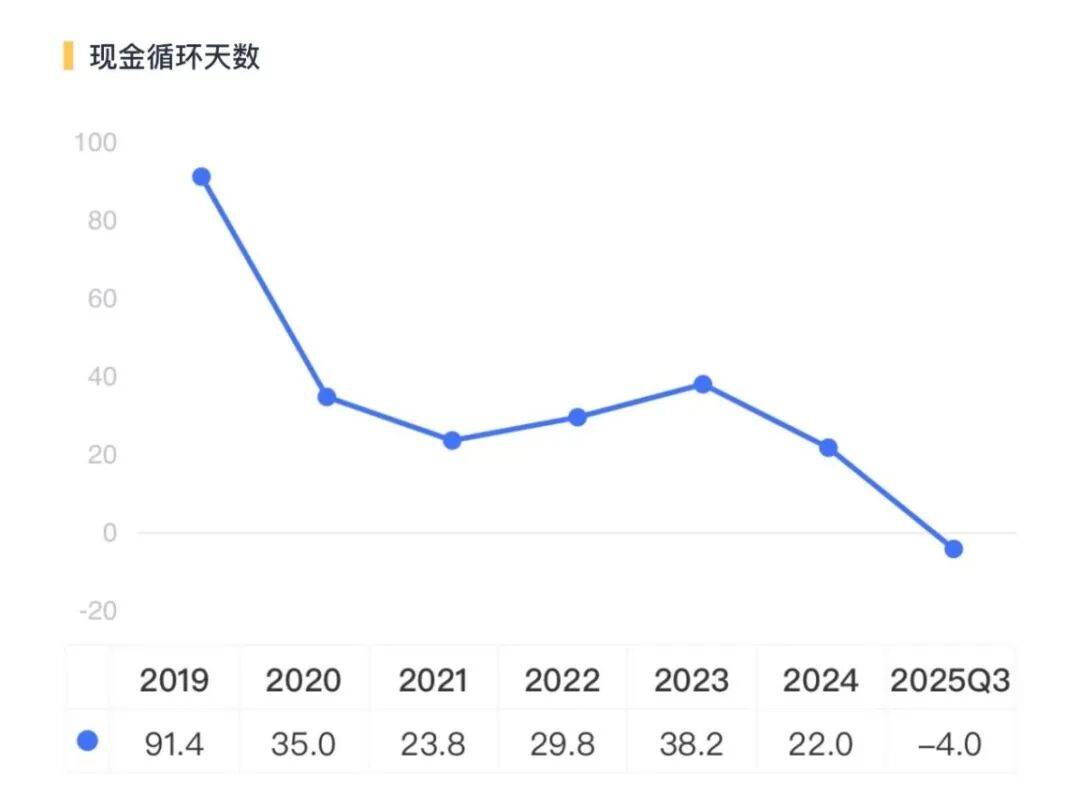 现金轮回显示,公司履历“购存销”所需的现金轮回已正在2025Q3降为负值,表白公司运营能力取资金操纵效率已达一流程度。