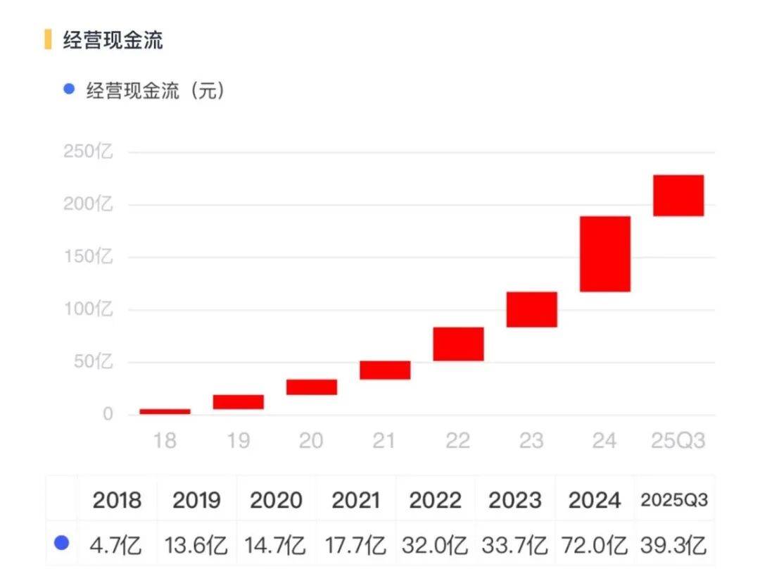 运营效率取焦点利润率连结上升态势的布景下,公司通过从业运营获得的运营性现金净流入稳步增加,2024年达到72亿元,2025年前三季度达到39亿元。