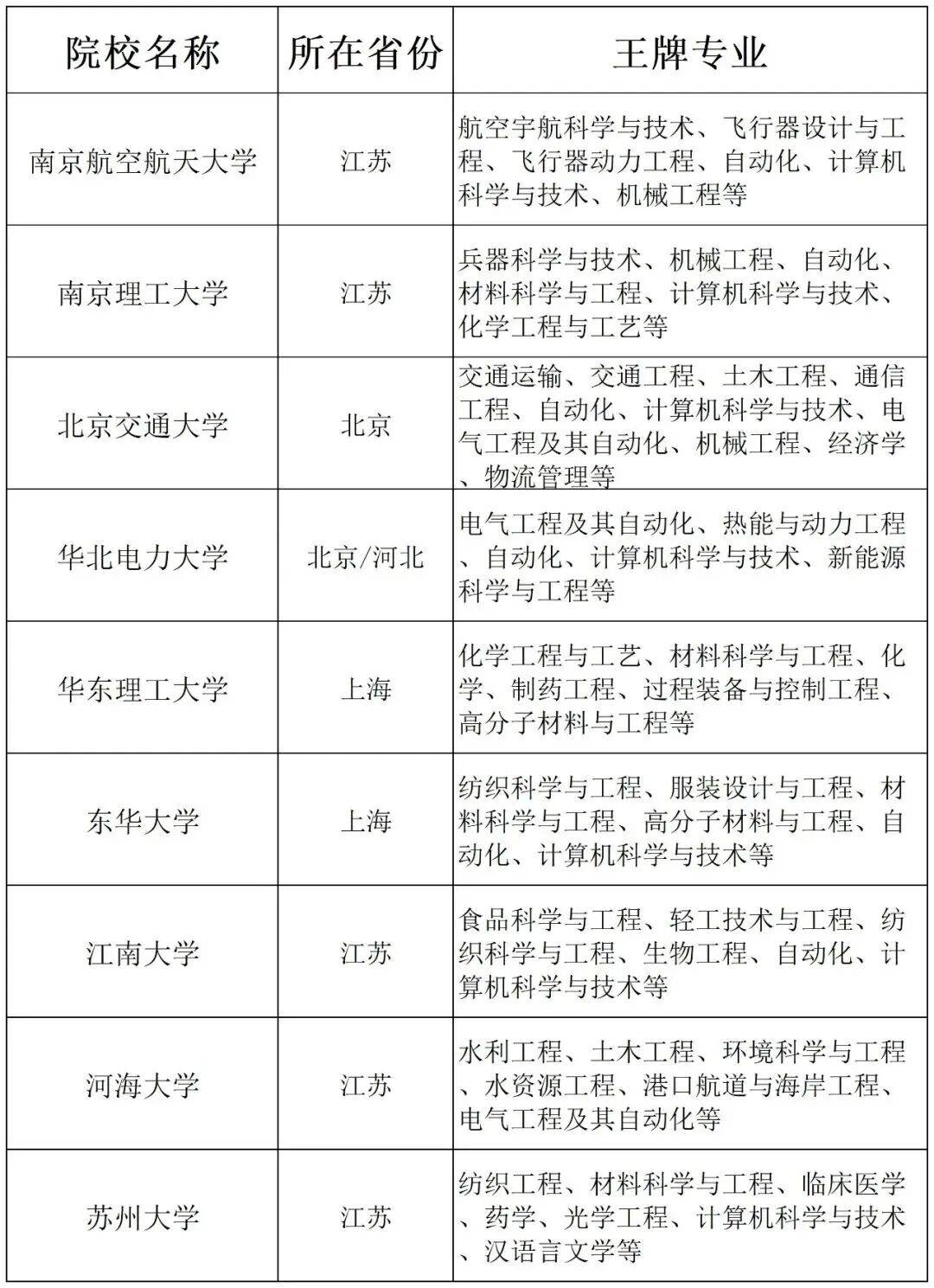 南京理工大学、南京航空航天大学、交通大学、华北电力大学、华东理工大学、江南大学、河海大学、东华大学、姑苏大学?。