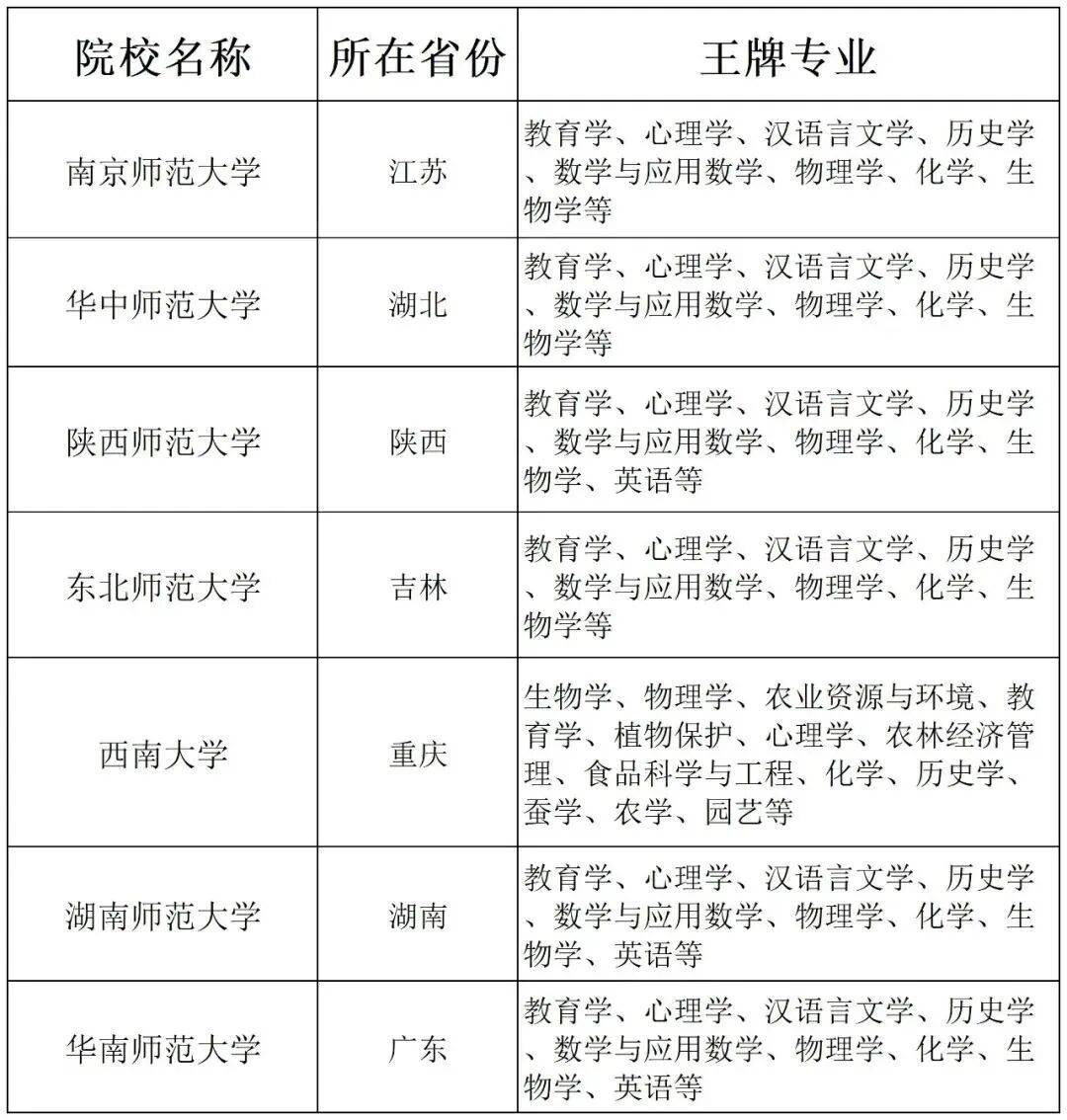 南京师范大学、华中师范大学、陕西师范大学、西南大学、东北师范大学、湖南师范大学、华南师范大学。