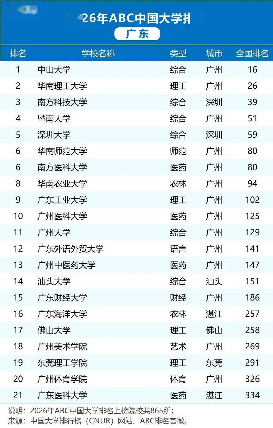 第12名是广东外语外贸大学,第13名是广州西医药大学,第14名是汕头大学,第15名是广东财经大学。