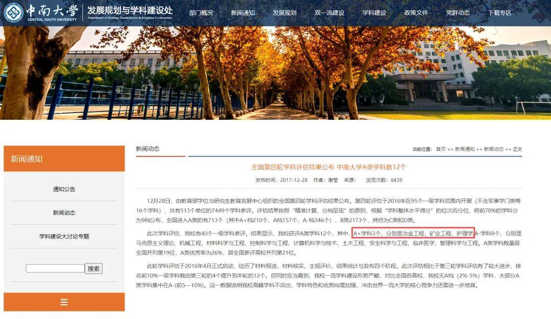 中南大学现正在有湘雅病院、湘雅二病院、湘雅三病院三家大型三甲分析病院,还有口腔病院和一堆非曲属从属病院。护理学正在第四轮学科评估里也是A+。