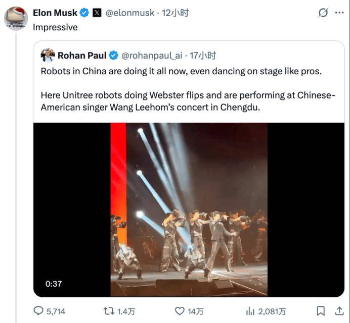 宇树G1机械人正在仿照和役动做时不慎给工程师一脚,他评论笑哭脸色包;六台宇树人形机械报酬王力宏演唱会伴舞,精准完成高难度韦伯斯特空翻,他不只转发至X平台更评价令人印象深刻;小鹏IRON首秀视频中拟人化走姿激发关心,他点赞并婉言特斯拉取中国公司将从导市场。